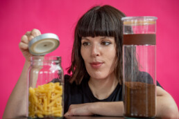 Reusing glass sauce jars as plant pots or refilling with zero waste shopping like pasta and lentils is a great way to reduce your impact on the environment.
